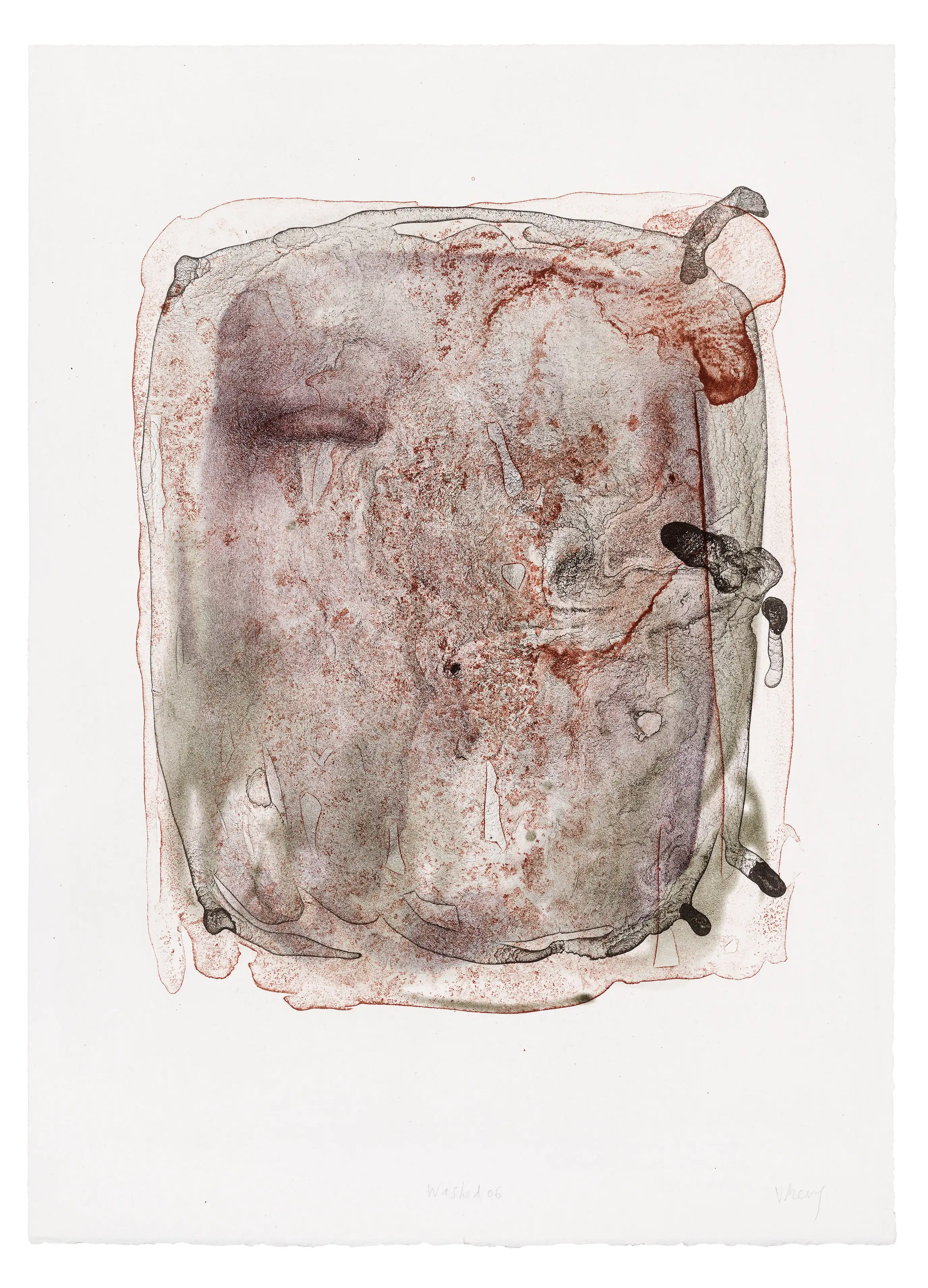 The "Washed" series – which includes 16 images – is printed from 3 or 4 photoplates drawn with Tusche ink. Colours are thinly layered to keep transparency and light from the paper. The reticulation of each plate adds up to create variations in colour density.
